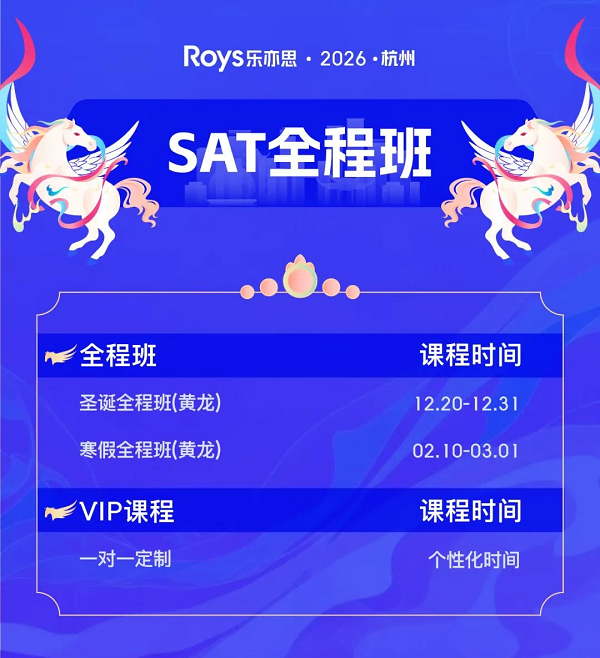 樂亦思也專門為想在圣誕寒假沖刺的同學開設了王牌課程——全程班。這個班可是目前唯一一個由Roy老師親授的課程哦!它涵蓋了從零基礎到1550+的完整備考干貨,能幫助“SAT全分數段”的學生系統性學習。