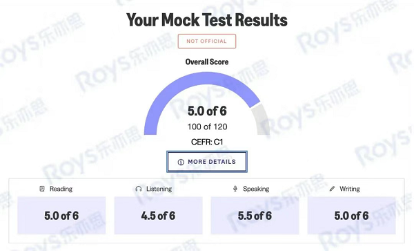 總分則從三個維度來呈現:6分制得分、120分制得分以及CEFR評級