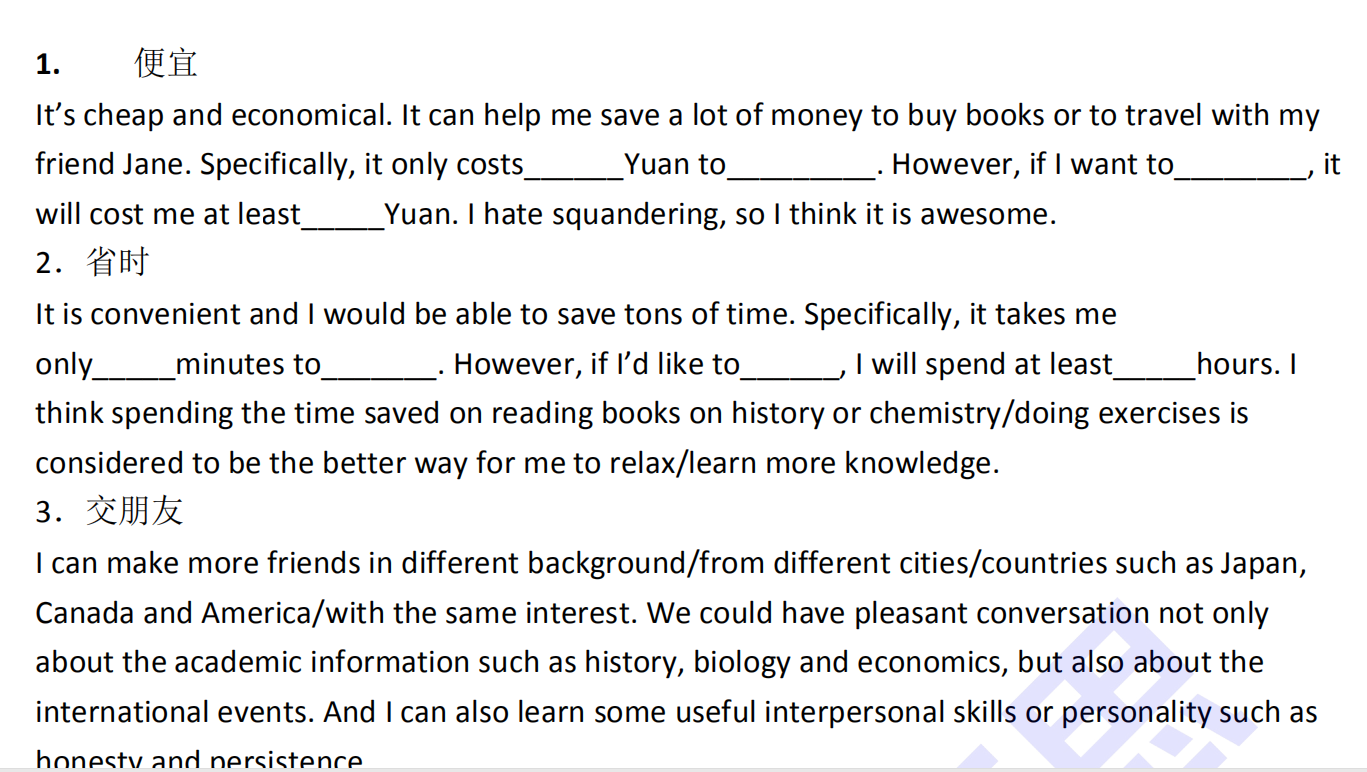 托福口語一二題模板